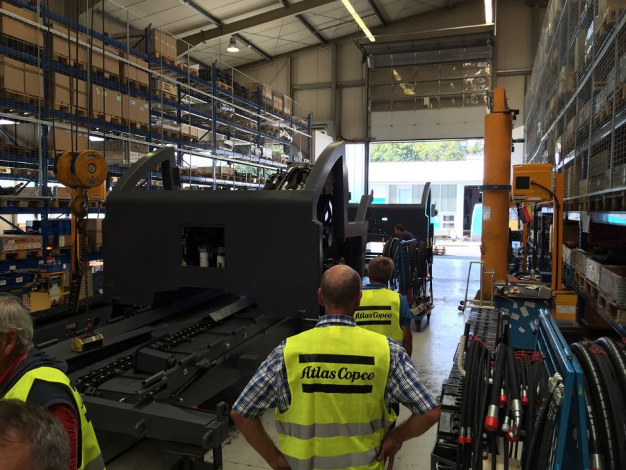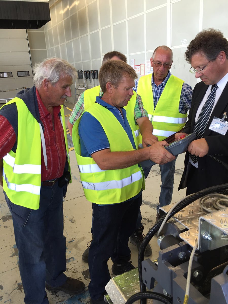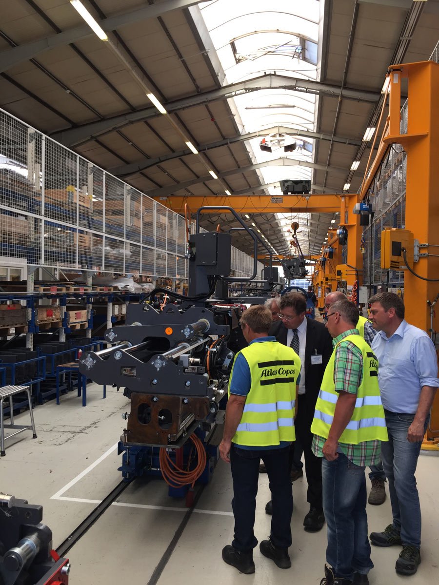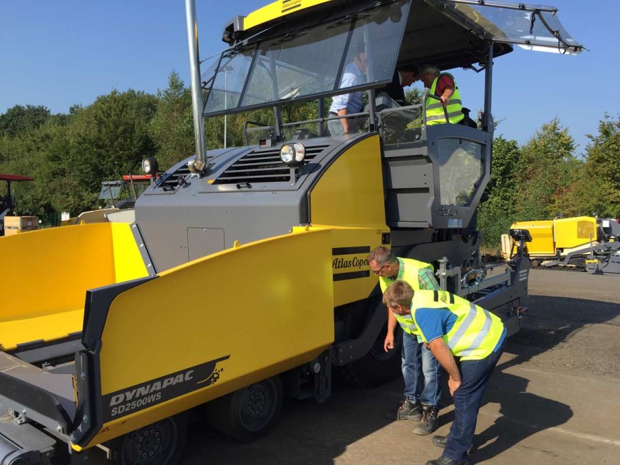 Geführt von Herrn Ulf Siemen, Product Manager Road Construction Equipment, und Herrn Michael Heid, Vertrieb Straßenbaumaschinen, erlebten sie einen informativen und faszinierenden Werksrundgang. Fertigungsstraße, Ersatzteillager und Probefahrt standen im Mittepunkt der Betriebsbesichtigung. Nach Mittagessen in der Werkskantine ging es nach draußen und die Straßenbauexperten von SCHARFF testeten den neuen Deckenfertiger SD2500WS.