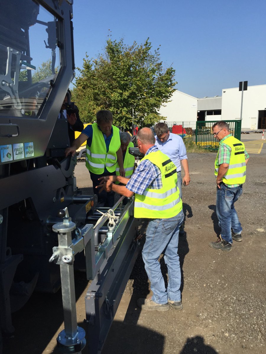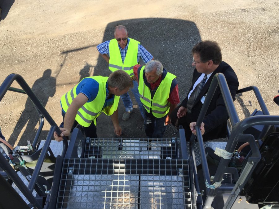 Geführt von Herrn Ulf Siemen, Product Manager Road Construction Equipment, und Herrn Michael Heid, Vertrieb Straßenbaumaschinen, erlebten sie einen informativen und faszinierenden Werksrundgang. Fertigungsstraße, Ersatzteillager und Probefahrt standen im Mittepunkt der Betriebsbesichtigung. Nach Mittagessen in der Werkskantine ging es nach draußen und die Straßenbauexperten von SCHARFF testeten den neuen Deckenfertiger SD2500WS.